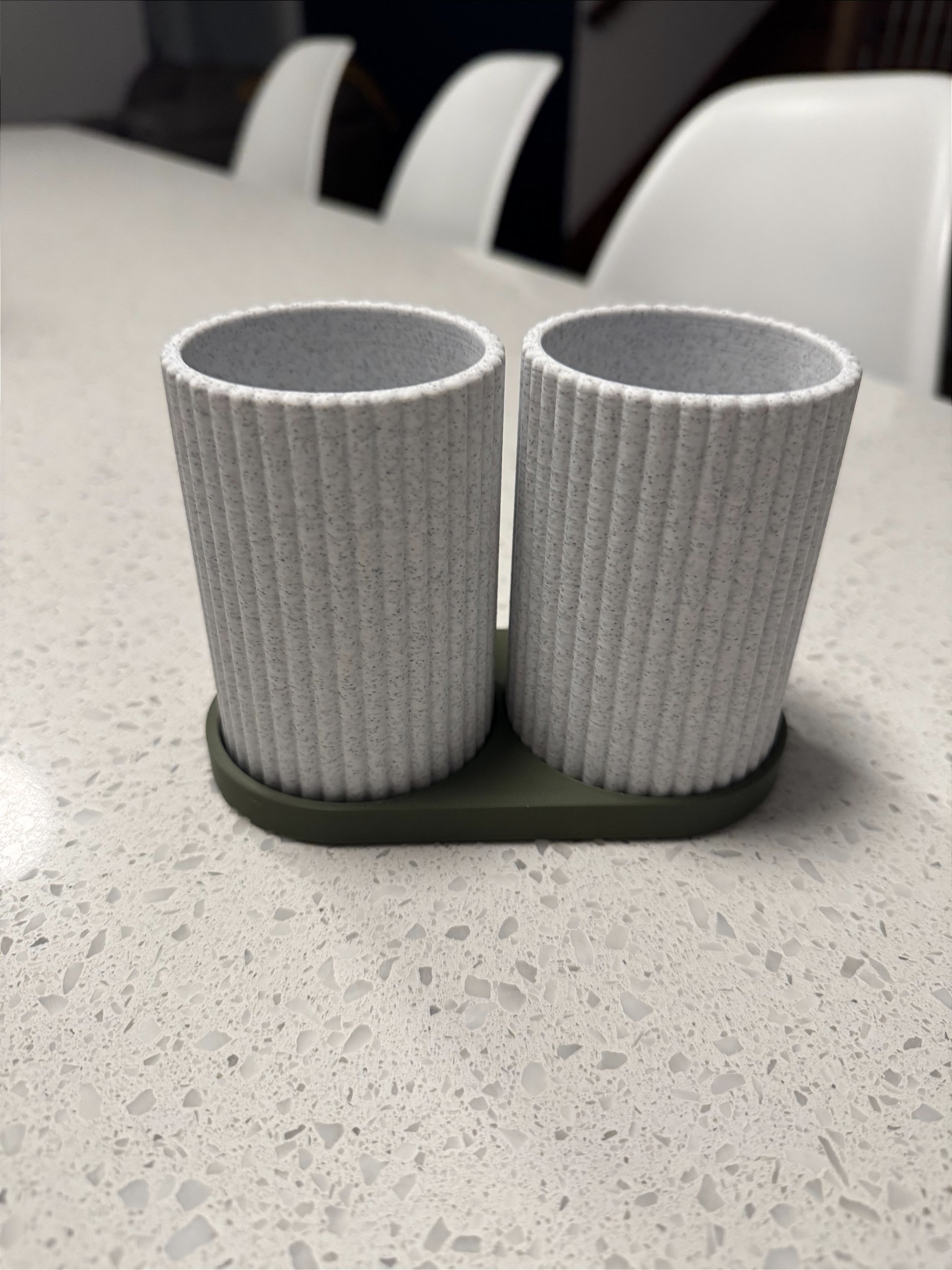 Mantenha sua pia organizada com o Porta Escovas Duplo Branco Granito.
