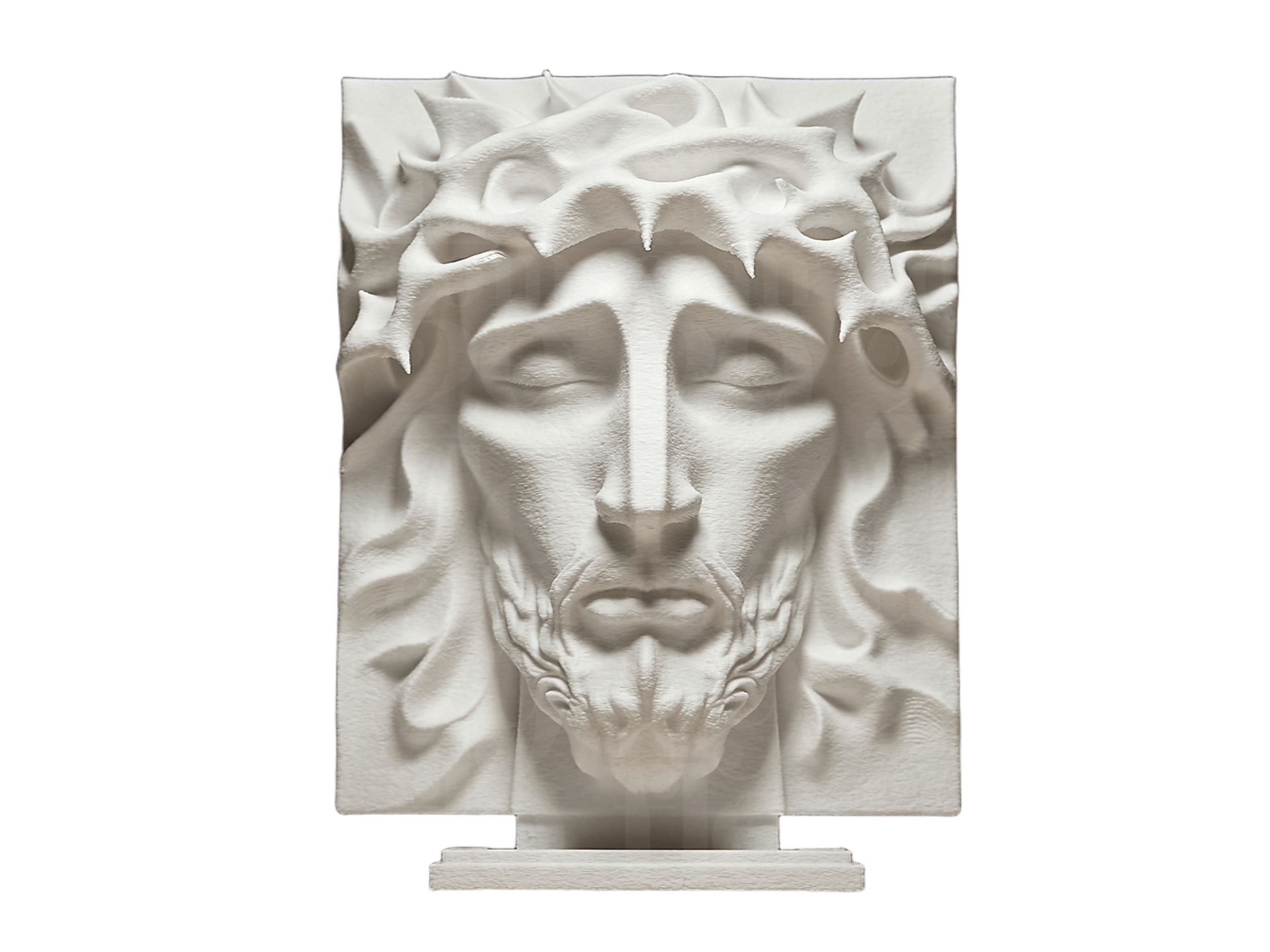 Quadro de Jesus Cristo em 3D, produzido em impressão 3D com riqueza de detalhes.
